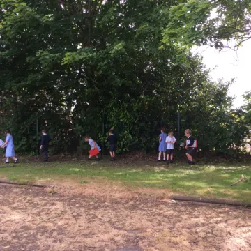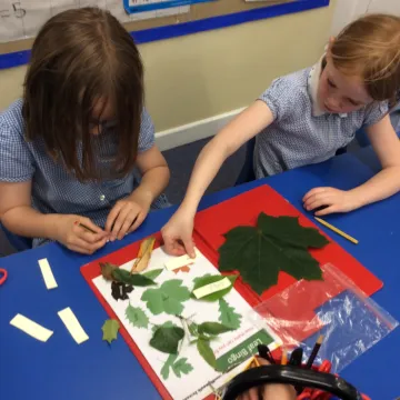 Year 2 went on a leaf hunt. They looked for leaves which would fit a certain description e.g. orange, flat, oval. They labelled their leaves and then tried to match them to the correct tree using a leaf identification sheet.